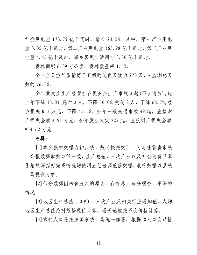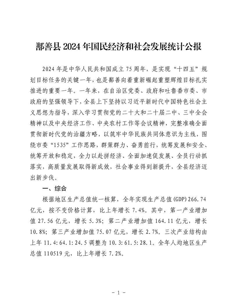 鄯善县2024年国民经济和社会发展统计公报