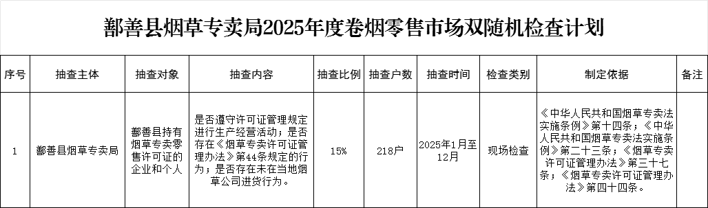 鄯善县烟草专卖局2025年度卷烟零售市场双随机检查计划
