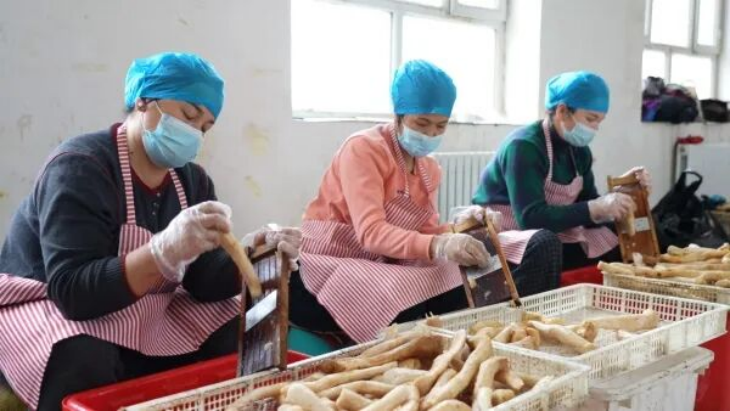 在此期间,加工厂开足马力生产,将新鲜大芸加工成易于保存、运输和销售的大芸干品。预计本生产季可加工产出大芸干品30余吨。凭借扎实的品质和良好的市场口碑,该加工厂年营收已稳定超过500万元,有效延伸了产业链,提升了产品附加值。