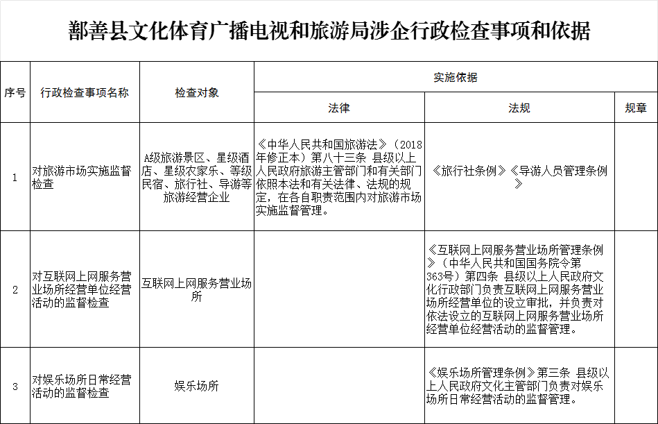鄯善县文化体育广播电视和旅游局涉企行政检查事项和依据