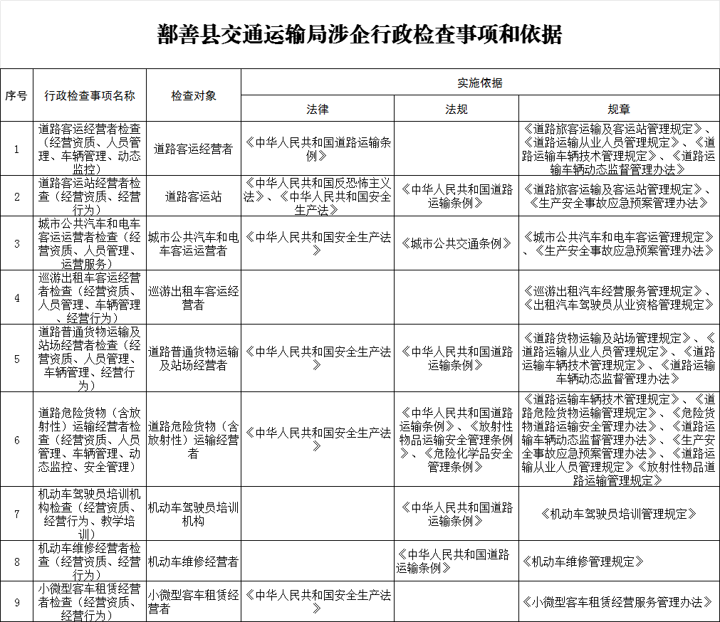 鄯善县交通运输局涉企行政检查事项和依据