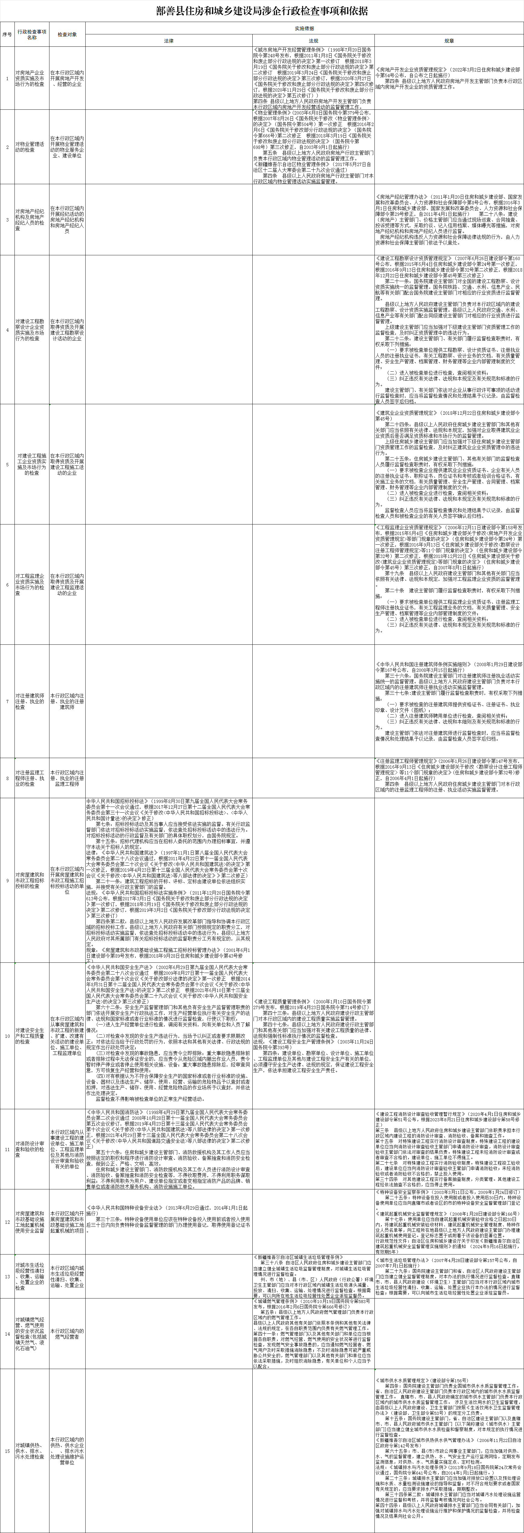 鄯善县住房和城乡建设局涉企行政检查事项和依据