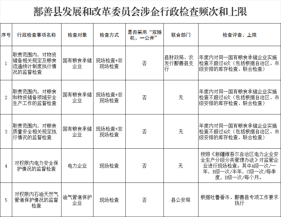 鄯善县发展和改革委员会(鄯善县粮食和物资储备局)涉企行政检查频次
