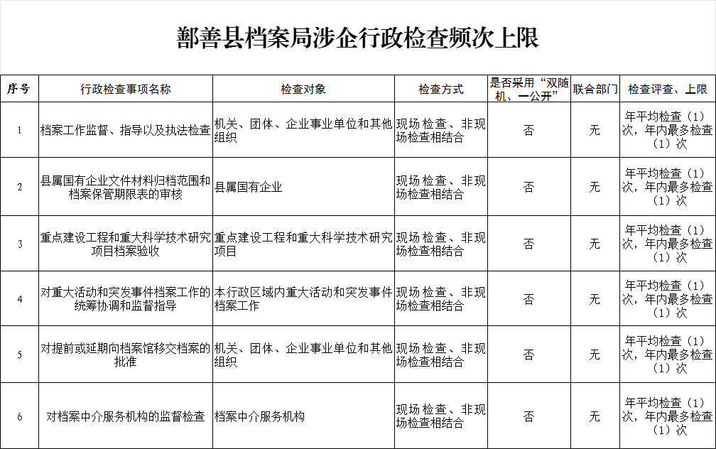 鄯善县档案局涉企行政检查频次上限