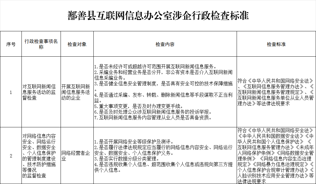 鄯善县互联网信息办公室涉企行政检查标准